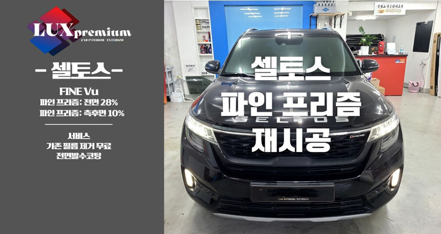 | 시공차량: 기아 셀토스 | 후면열선: FINE PRISM 10% | 측면2열: FINE PRISM 10% |