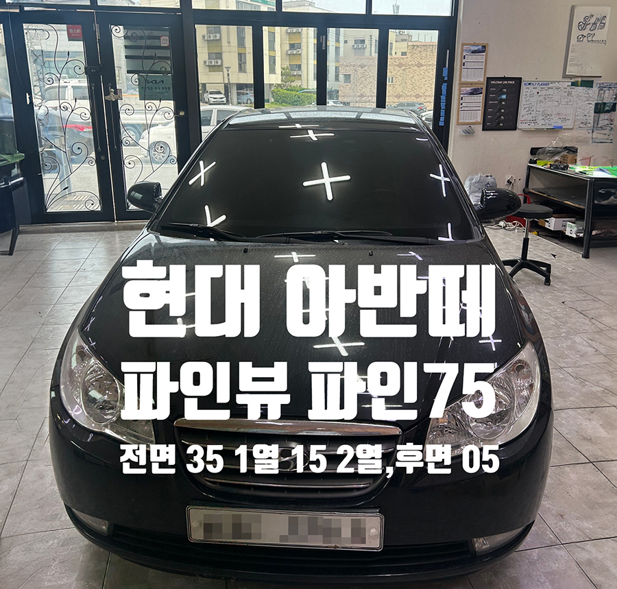 | 시공차량: 현대 아반떼 | 후면열선: FINE 75 5% | 측면2열: FINE 75 5% |