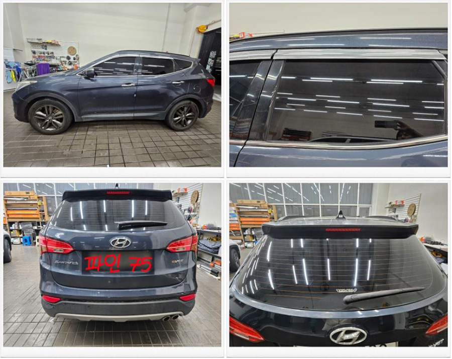 | 시공차량: 현대 싼타페 | 후면열선: FINE 75 15% | 측면2열: FINE 75 5% |